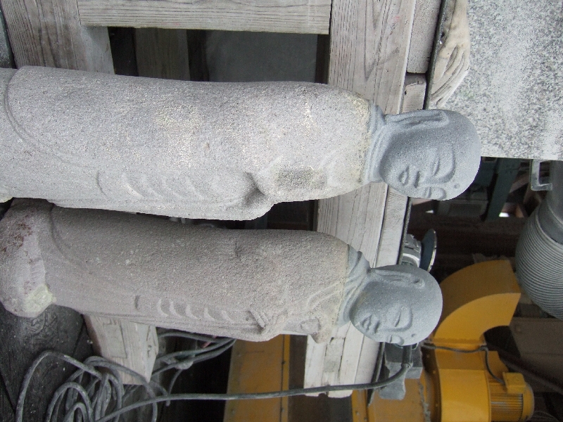 ①首から折れたお地蔵様を肩からカット(鉄筋入)します